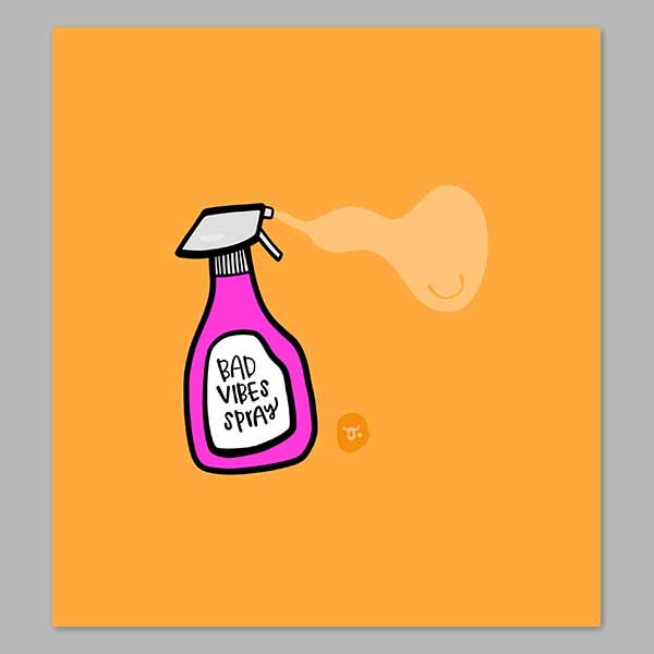 Download a high-resolution digital print of Bad Vibes Away. Have it printed on your own using your desired media and your desired size! No TDQ watermark will appear on the image.